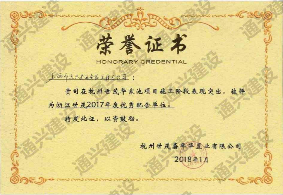 2017年度浙江世贸优秀配合单位